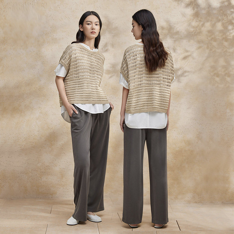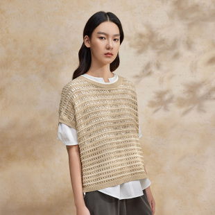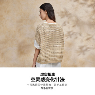 休闲简约针织短袖 夏新款 BDR2SD1377 上衣女商场同款 播波嘻镂空罩衫