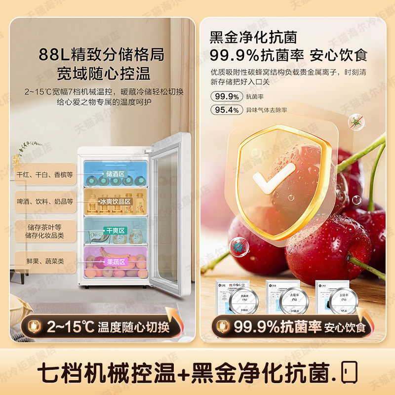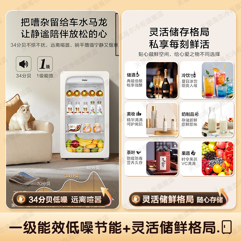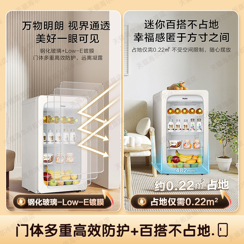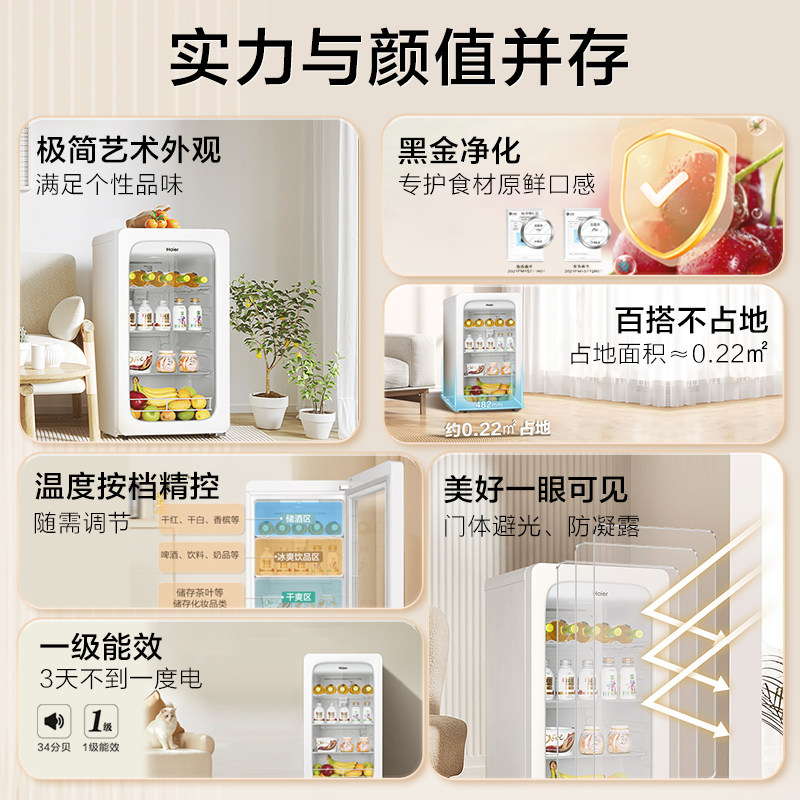 海尔小红花套系92升元 气冰吧小型冷藏保鲜家用茶叶饮料柜冰箱