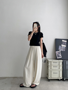 薄款 宽松显瘦垂感休闲裤 阔腿裤 系带百搭直筒高腰裤 子 夏季 sun柚