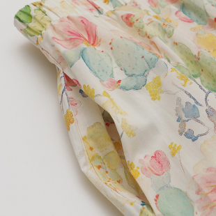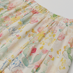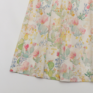 春夏新款 夏日香气复古少女油画水粉彩色口袋压褶纯棉碎花半身裙