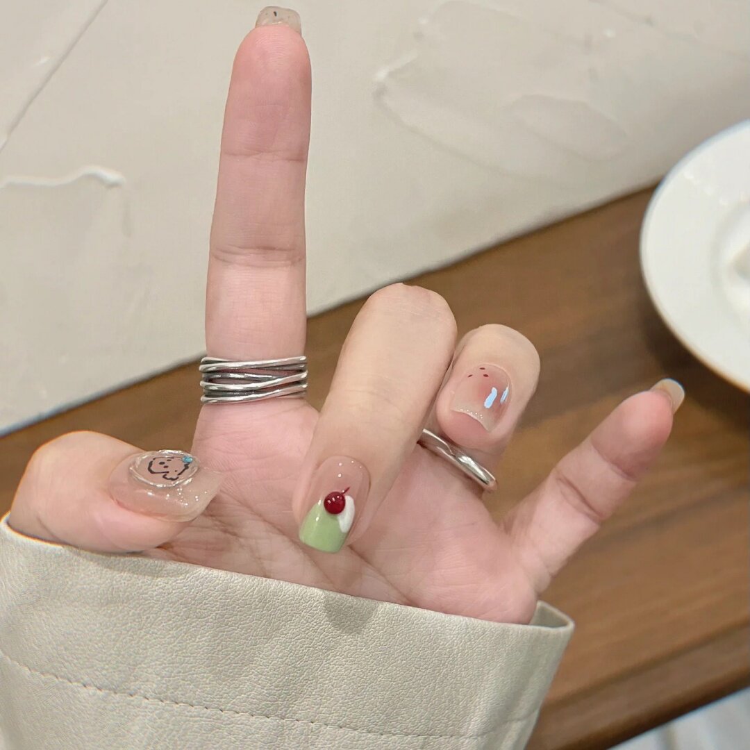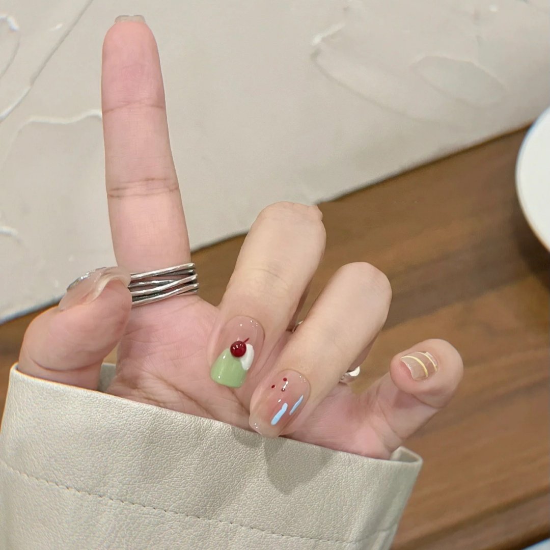 手工定制成品穿戴甲2025新款 显白蜜瓜冰淇淋光疗假指甲贴片孕妇