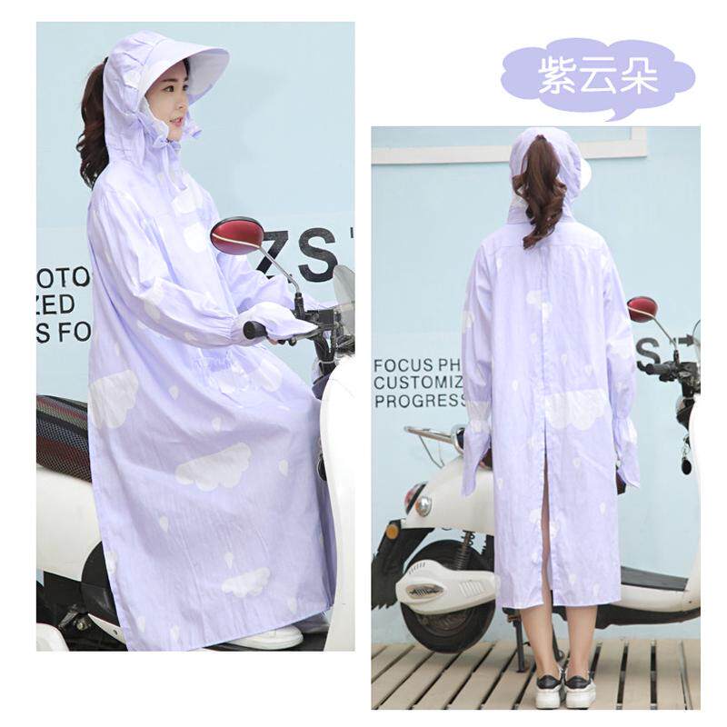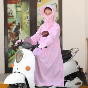 骑车纯棉女长袖 带帽连帽开电动车遮阳 披肩防晒衣服防紫外线加长款