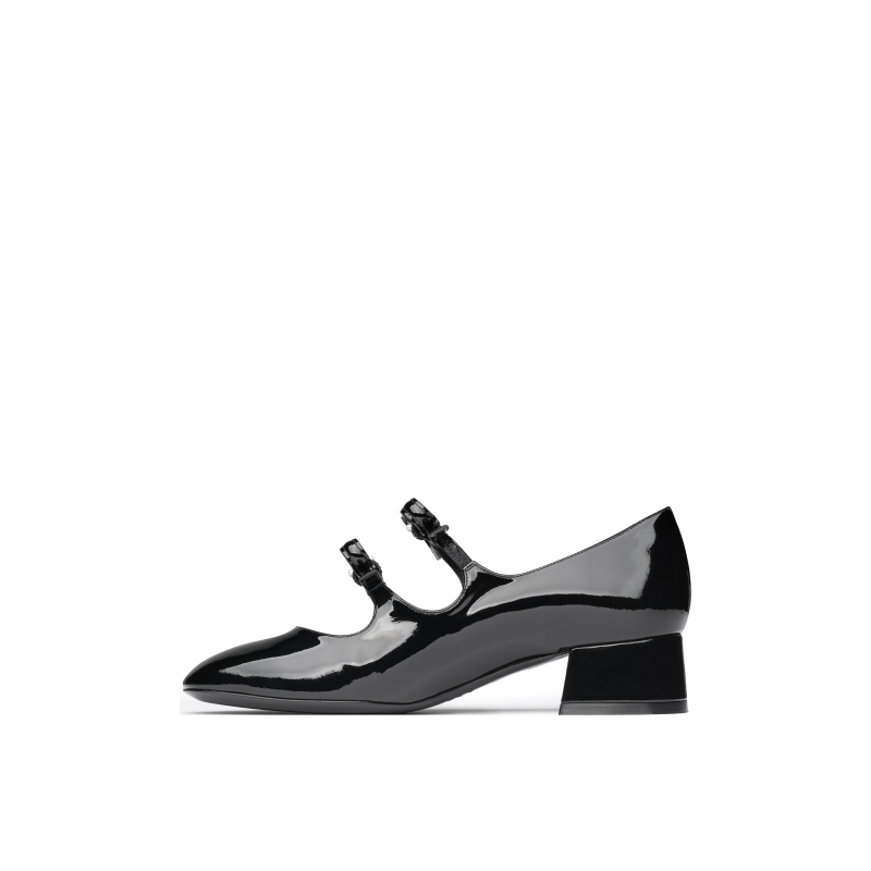 绝美黑色漆皮职业浅口单鞋 新款 子 女细跟2026春季 达芙妮红底高跟鞋