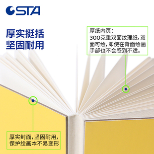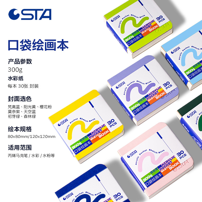 STA斯塔丙烯翻翻乐口袋本摸鱼本豆豆本中粗纹理水彩硬画纸素描速写手帐绘画本随身便携迷你小方本马克笔美术