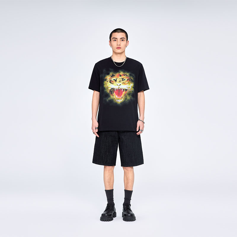 针织宽松落肩黑色闪粉短袖 男士 流行新款 T恤 Hardy埃德哈迪夏季