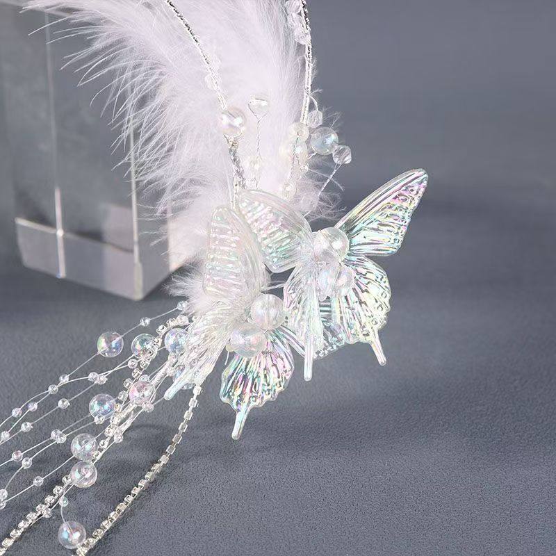 蝴蝶发夹红色山茶花旗袍古风配敬酒服中式 簪子发饰新娘头饰