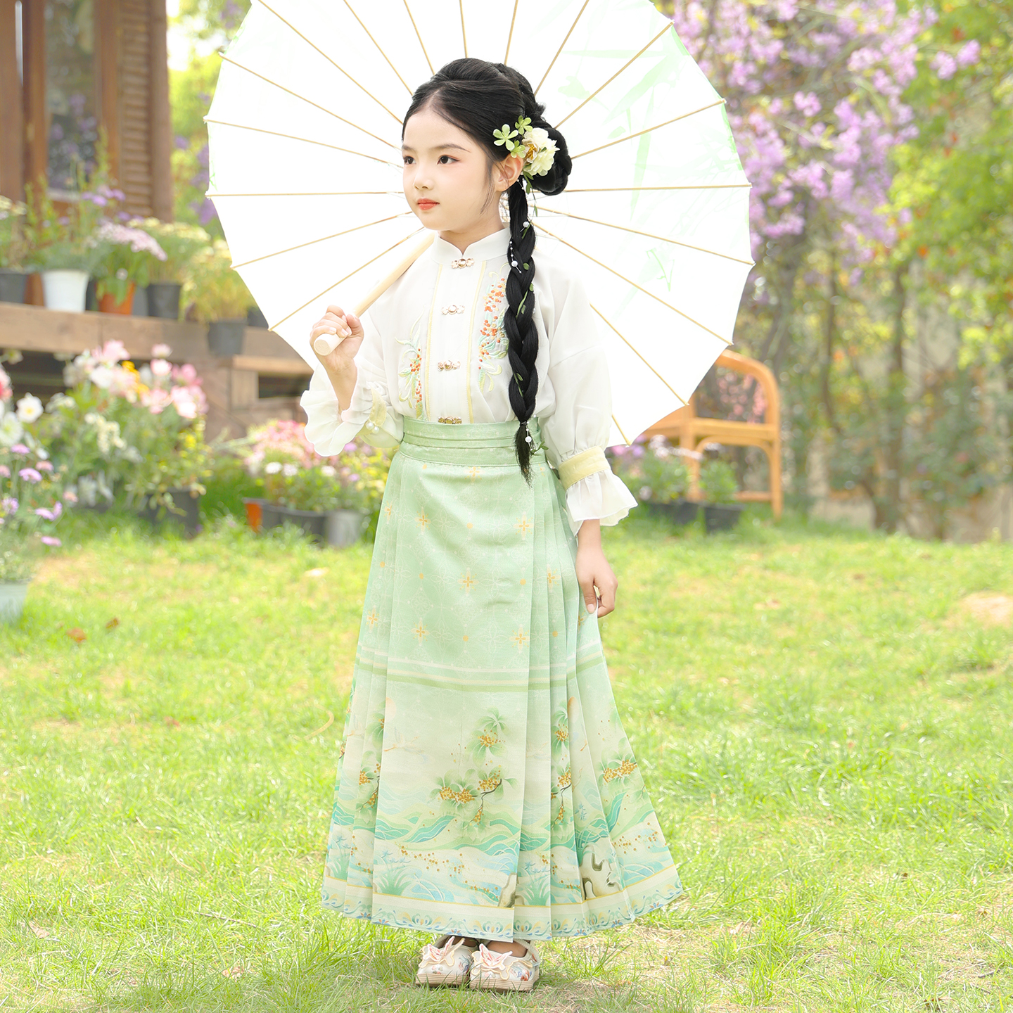 著纱.十二花神之桂花 马面裙子女童绿色汉服女童超好看汉服公主裙