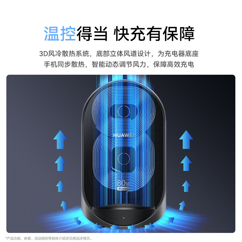 80W 无线超级快充 3D风冷散热系统支持Pura70 华为超级快充立式 Ultra Max Pro Mate70系列 无线充电器