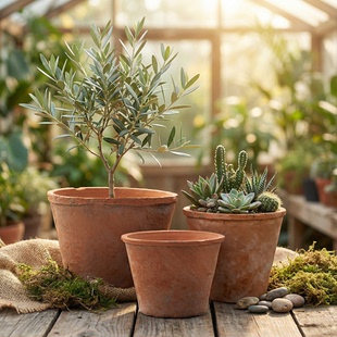 MrsTAO红陶多肉复古陶土花盆陶瓷花器粗陶透气吸水泥瓦盆老式 陶盆