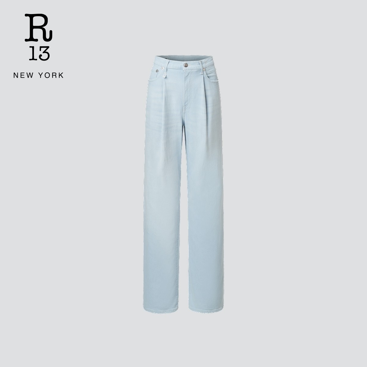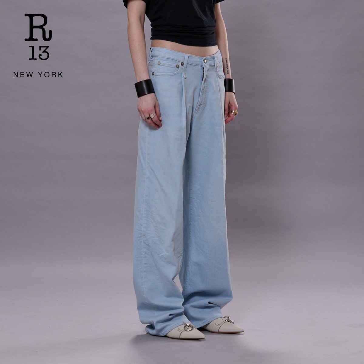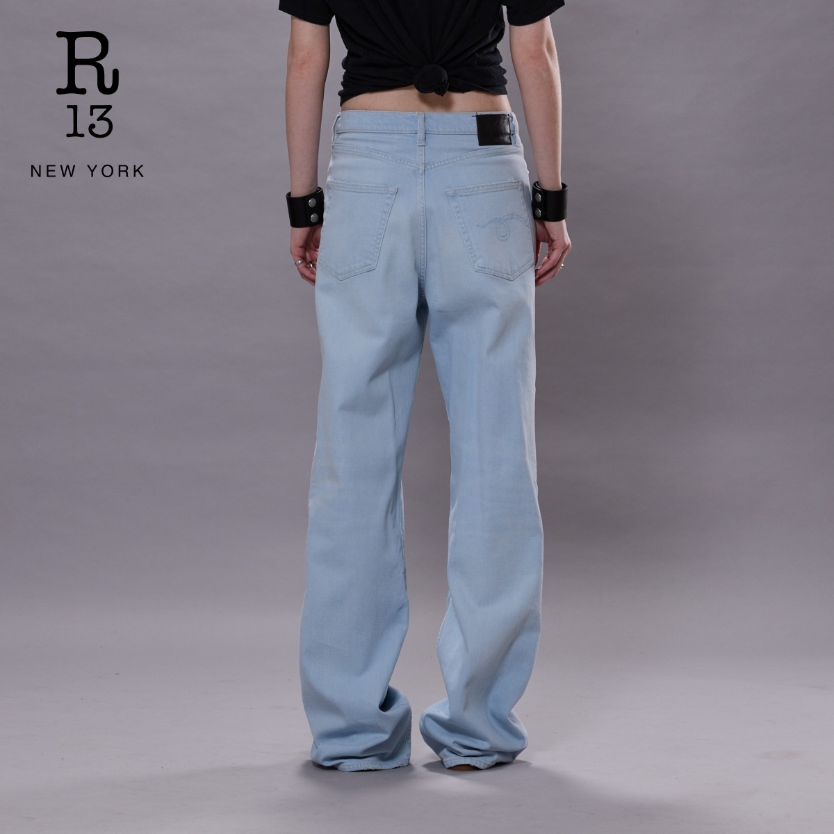 DAMON R13 褪色浅蓝褶皱阔腿牛仔裤 明星同款
