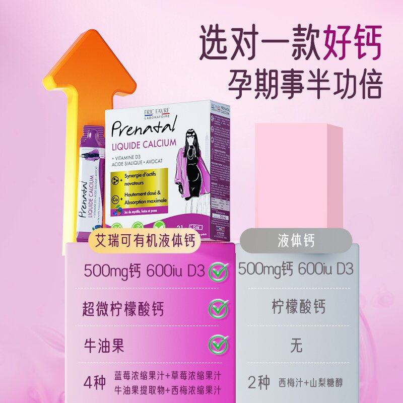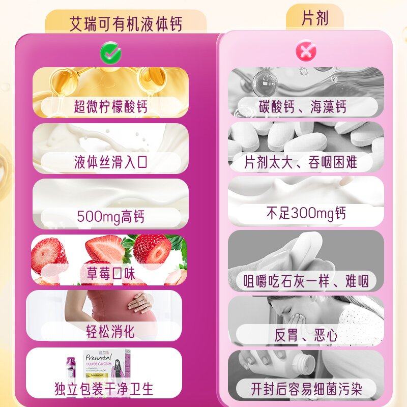 艾瑞可孕妇燕窝酸钙孕妇专用dha补钙成年女性孕期液体钙 自营