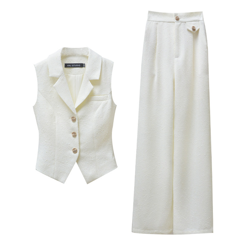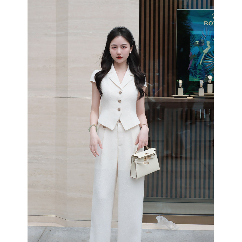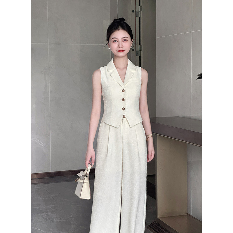 通勤法则 套装 小娜椒小个子老钱风无袖 时尚 女 马甲上衣直筒裤