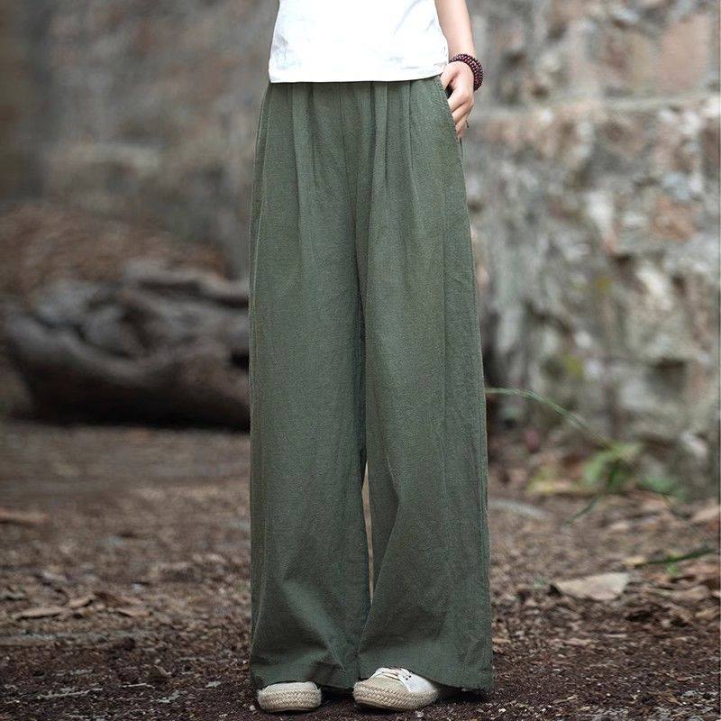 砂洗宽松佛系打坐禅裤 文艺复古棉麻灯笼裤 定制 女2025新中式 居士裤