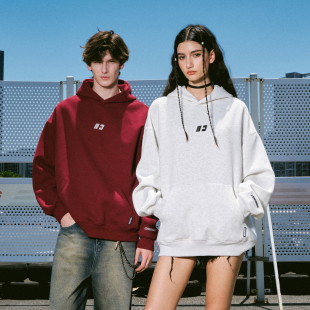 外套女上衣 潮牌情侣春秋美式 FORNINES刺绣重磅灰色卫衣男款 连帽衫