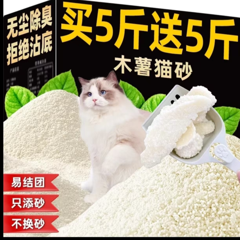 纯木薯猫砂除臭强近无尘不沾底超省砂结团原味植物砂20斤40斤正品