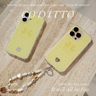 coditto奶油黄双层印花适用iPhone17promax15promax16手机壳挂链原创少女ins风苹果16pro保护套夏日经典 挂绳
