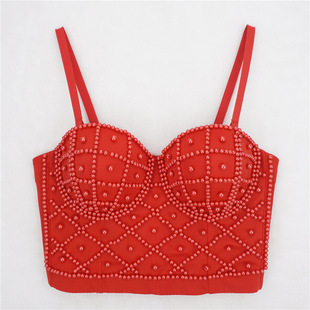 抹胸上衣性感无肩带打底外穿吊带背心女 显瘦短款 夏季 辣妹烫钻修身