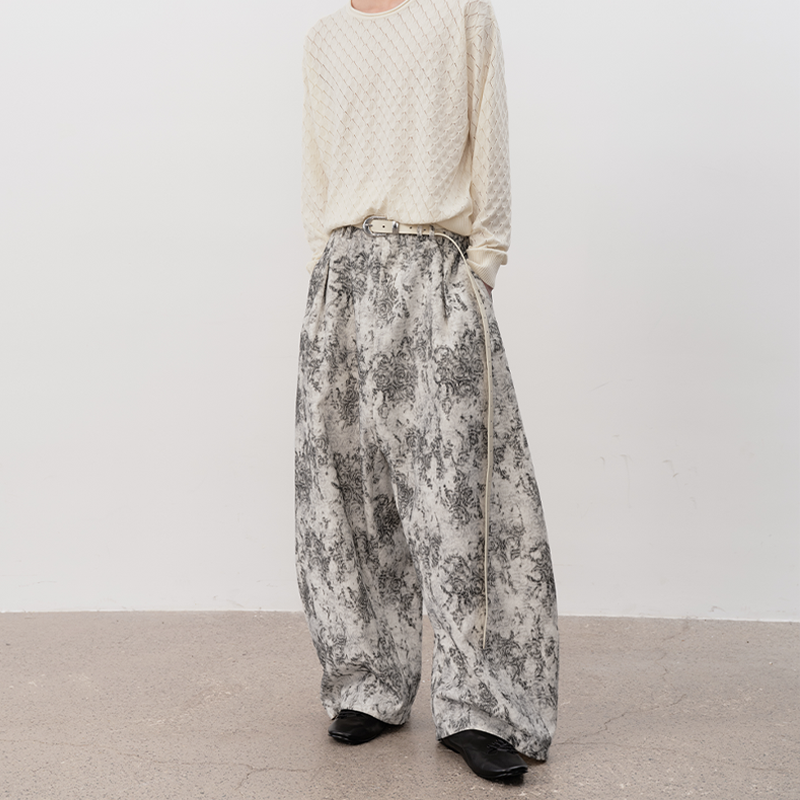 树纹肌理 JCAESAR 低裆白波纹提花长裤 PANTS 弯刀阔腿 JACQUARD