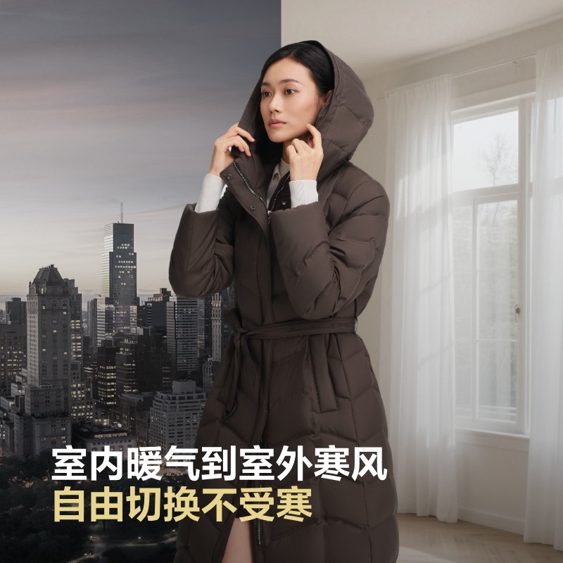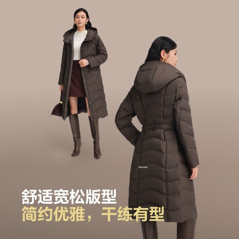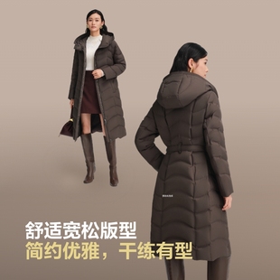 商务收腰连帽优雅品质 女羽绒服过膝长款 波司登90鹅绒2025秋季 新款