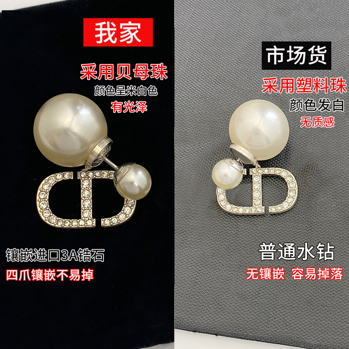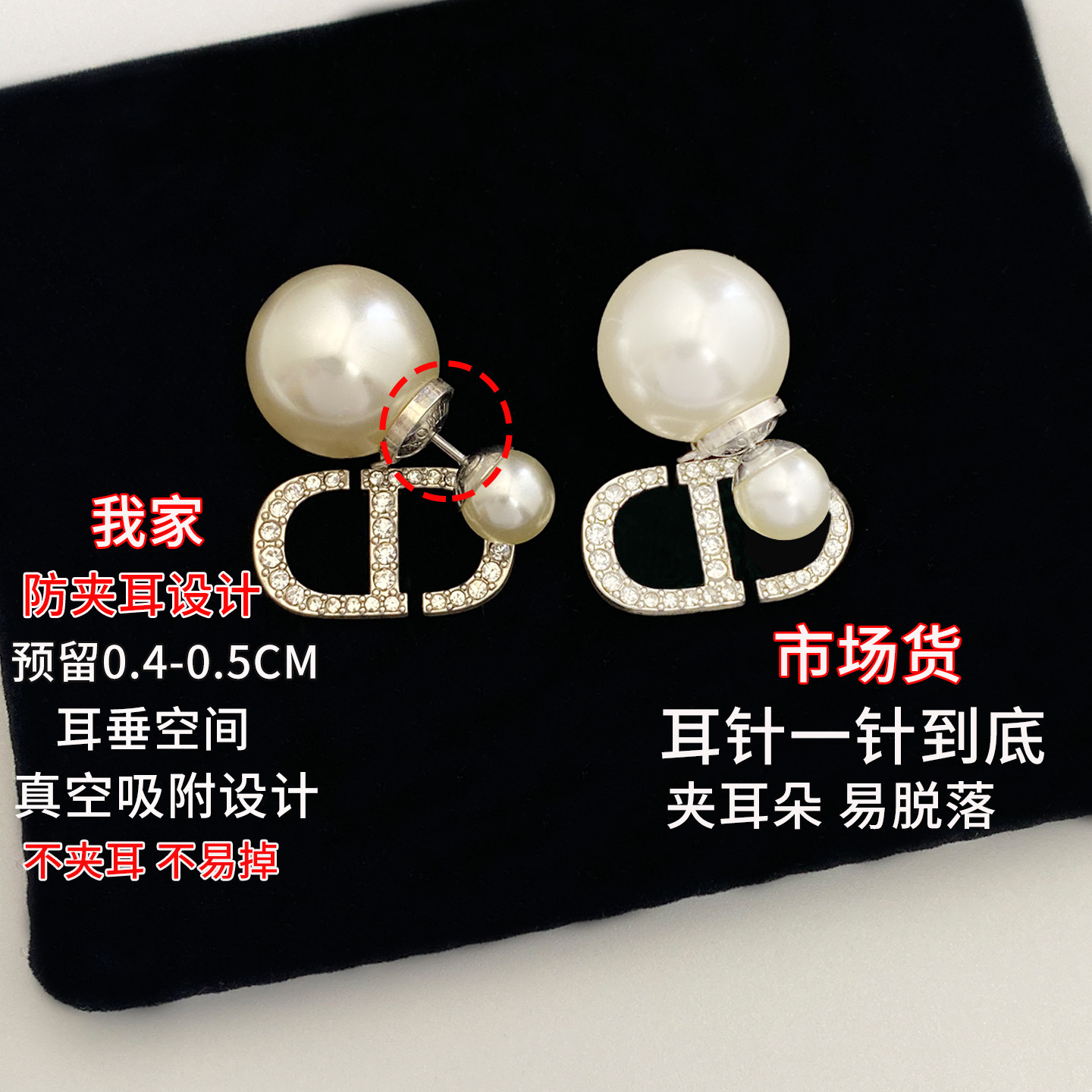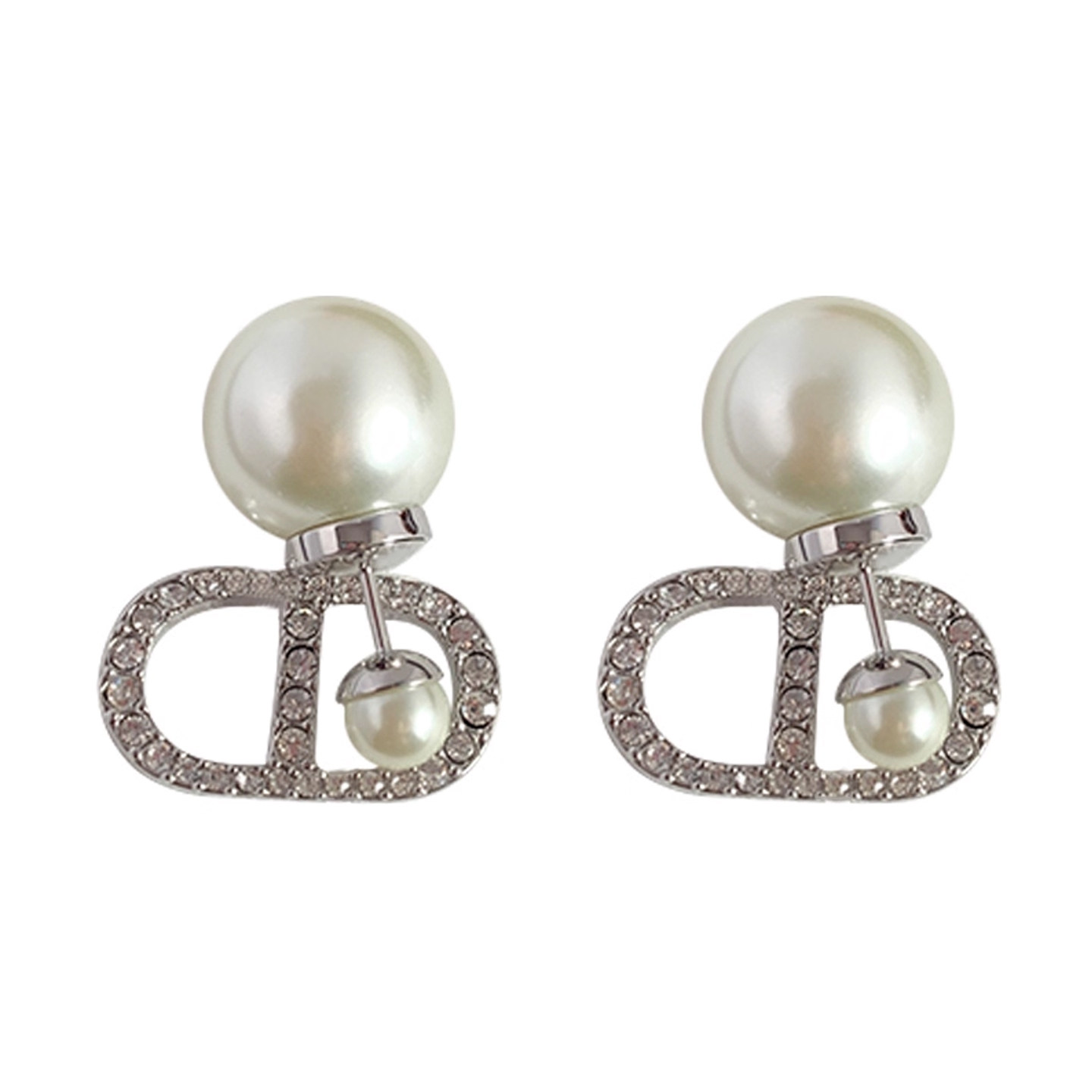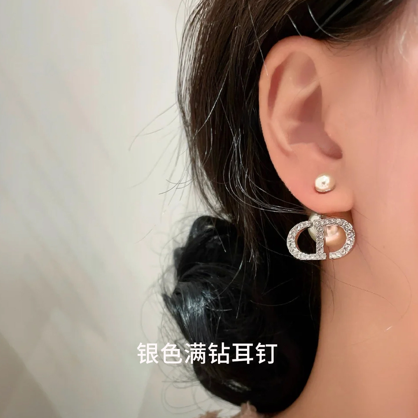 奥米迪奥满钻字母CD银色珍珠耳钉韦雪同款 潮女耳饰 高级感小众新款