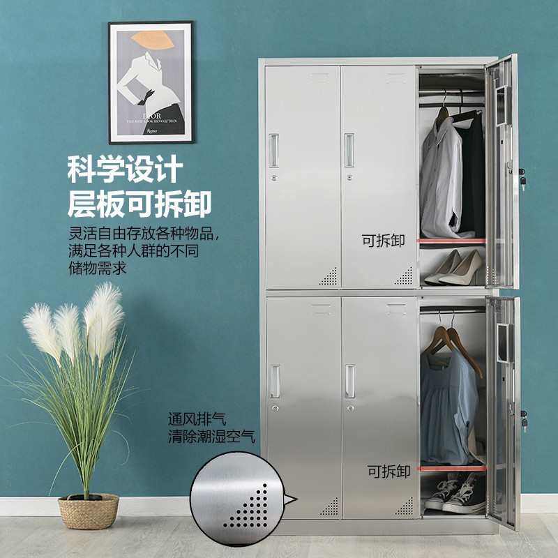 304不锈钢更衣柜员工宿舍多门储物柜无尘车间柜不锈钢多层杂物柜