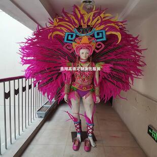 新款 开场大气羽毛背板桑巴舞演出服巴西狂欢节红磨坊走秀巡游表演