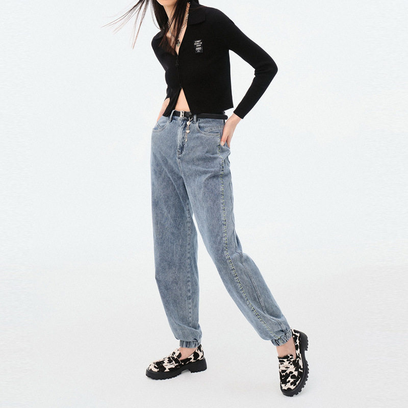 冬做旧质感热感保暖直筒原牛色复古牛仔裤 太平鸟男装 牛仔裤
