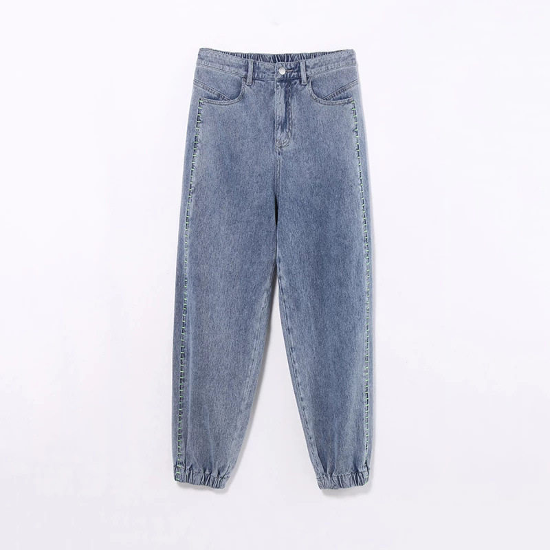 男款 工地劳保耐磨工作裤 宽松束脚大码 休闲哈伦裤 工装 松紧腰牛仔裤