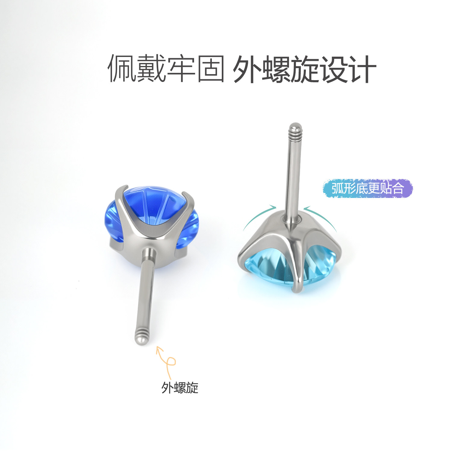 植入级医用钛钢耳钉女养耳洞防掉螺丝超闪耳环耳骨钉睡觉免摘耳饰