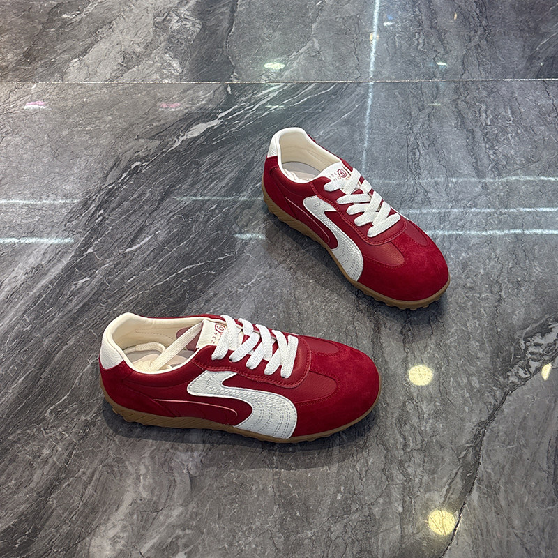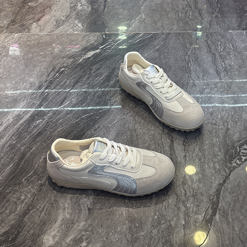 拼色运动休闲鞋 真皮轻便软底显脚小德训鞋 透气薄款 新款 女2025夏季