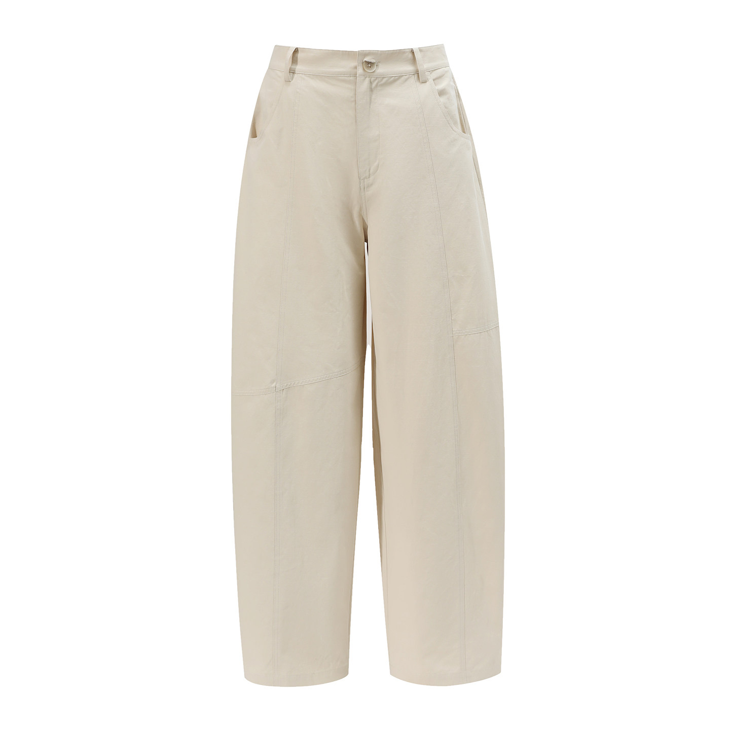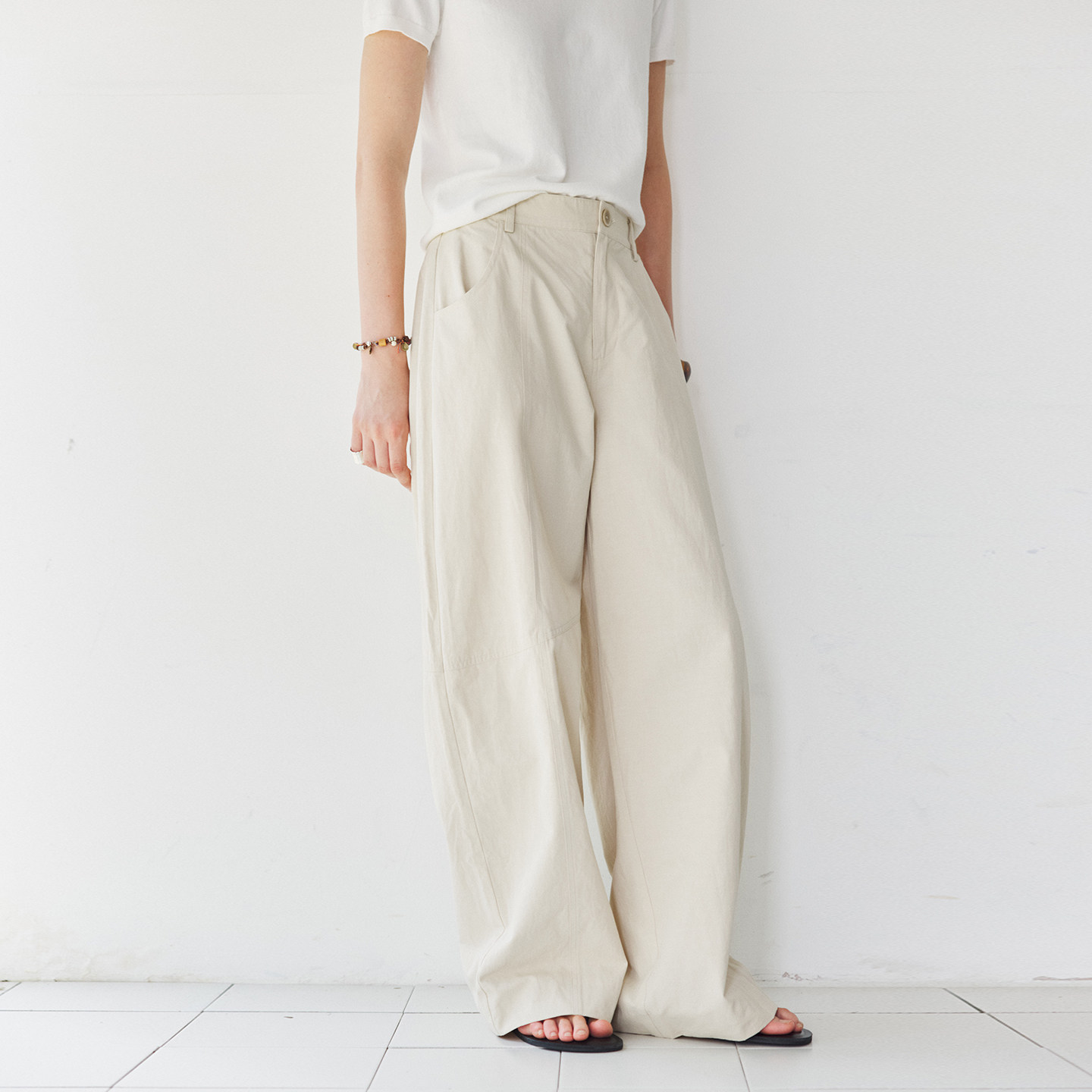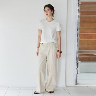 女简约垂感显瘦白色直筒休闲长裤 NON RESTRAIN亚麻高腰宽松阔腿裤
