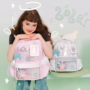 LOLA 大容量高中生双肩电脑背包 DESIGN天使波点痛包书包初中女生