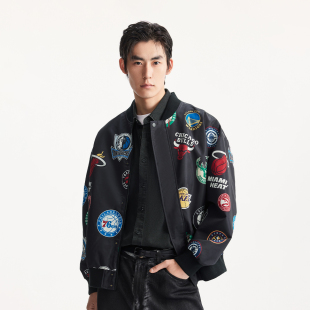 上衣 长袖 杰克琼斯NBA联名男装 春秋夹克舒适百搭衣身满印潮流时尚
