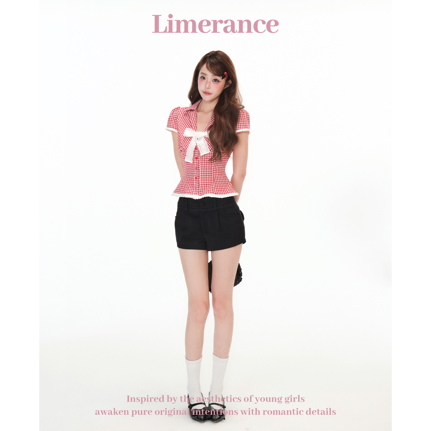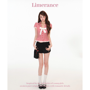 红璃树莓 女设计感短袖 2025夏季 红白格纹衬衫 上衣 新款 甜梨呆呆