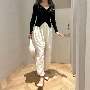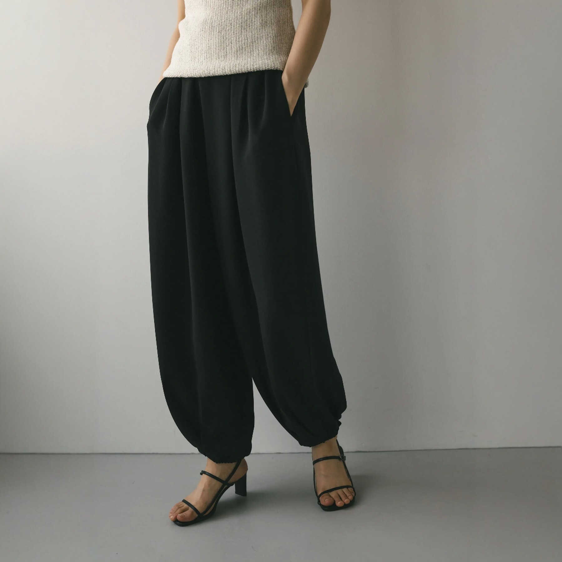 抗皱免烫松紧腰褶裥九分舒适气球裤 STY1EM1XER 简约休闲松弛感