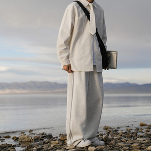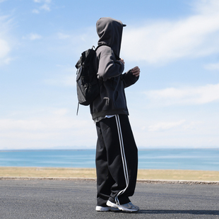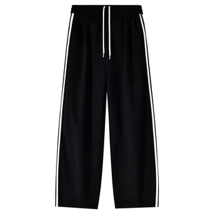 宽松垂感直筒休闲裤 @港仔文艺男 美式 男秋冬运动长裤 侧边条纹卫裤