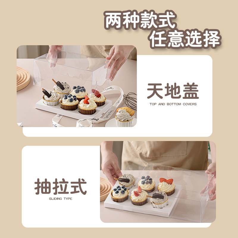 12粒装 纸杯蛋糕包装 加高马芬杯子烘焙甜品手提打包盒 盒透明2