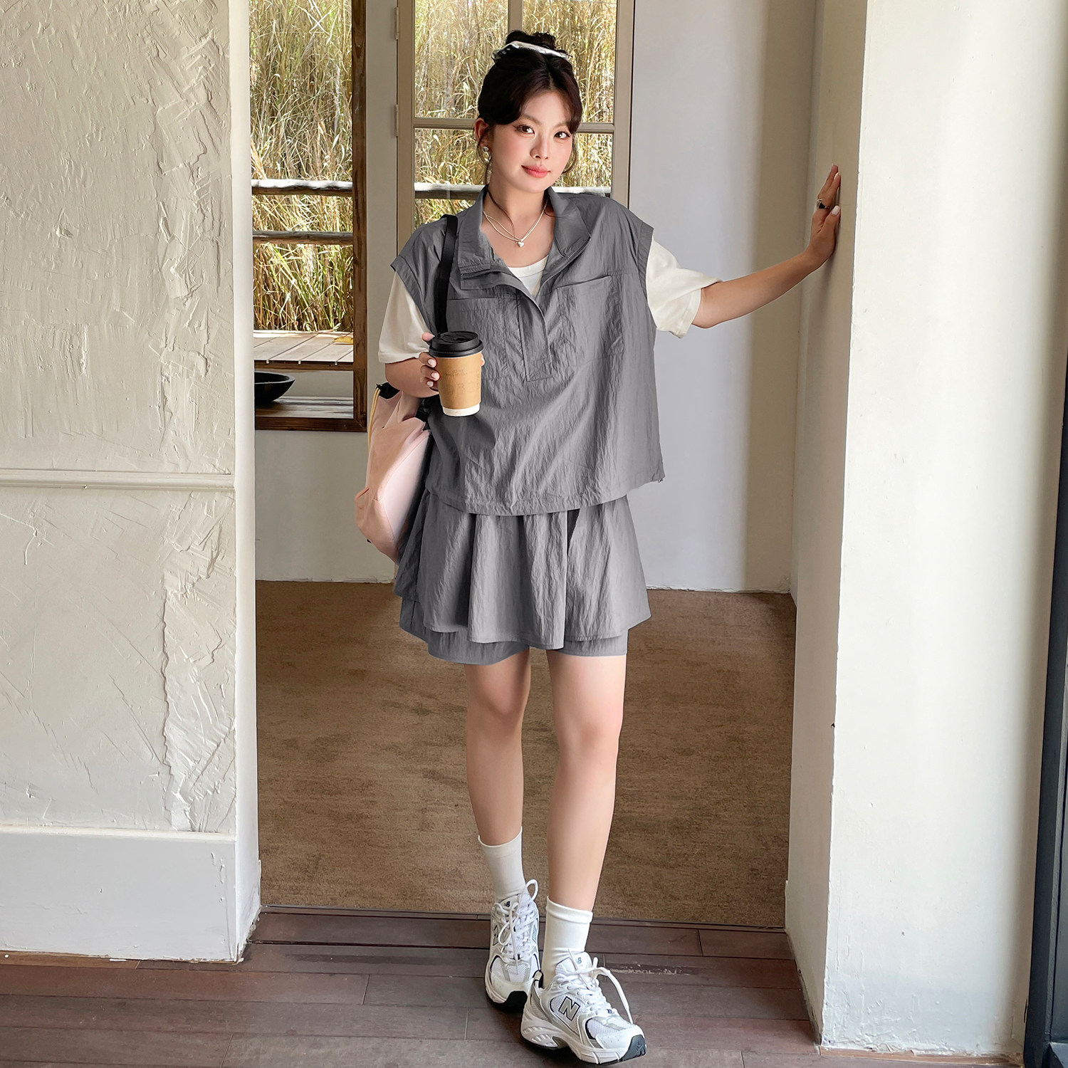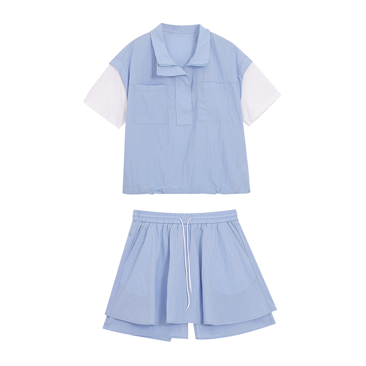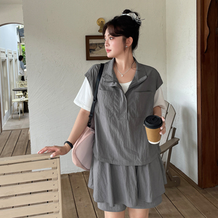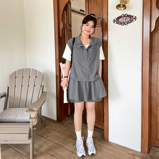 胖mm休闲运动假两件短袖 洋气时髦套装 大码 显瘦工装 夏季 裙裤 女时尚
