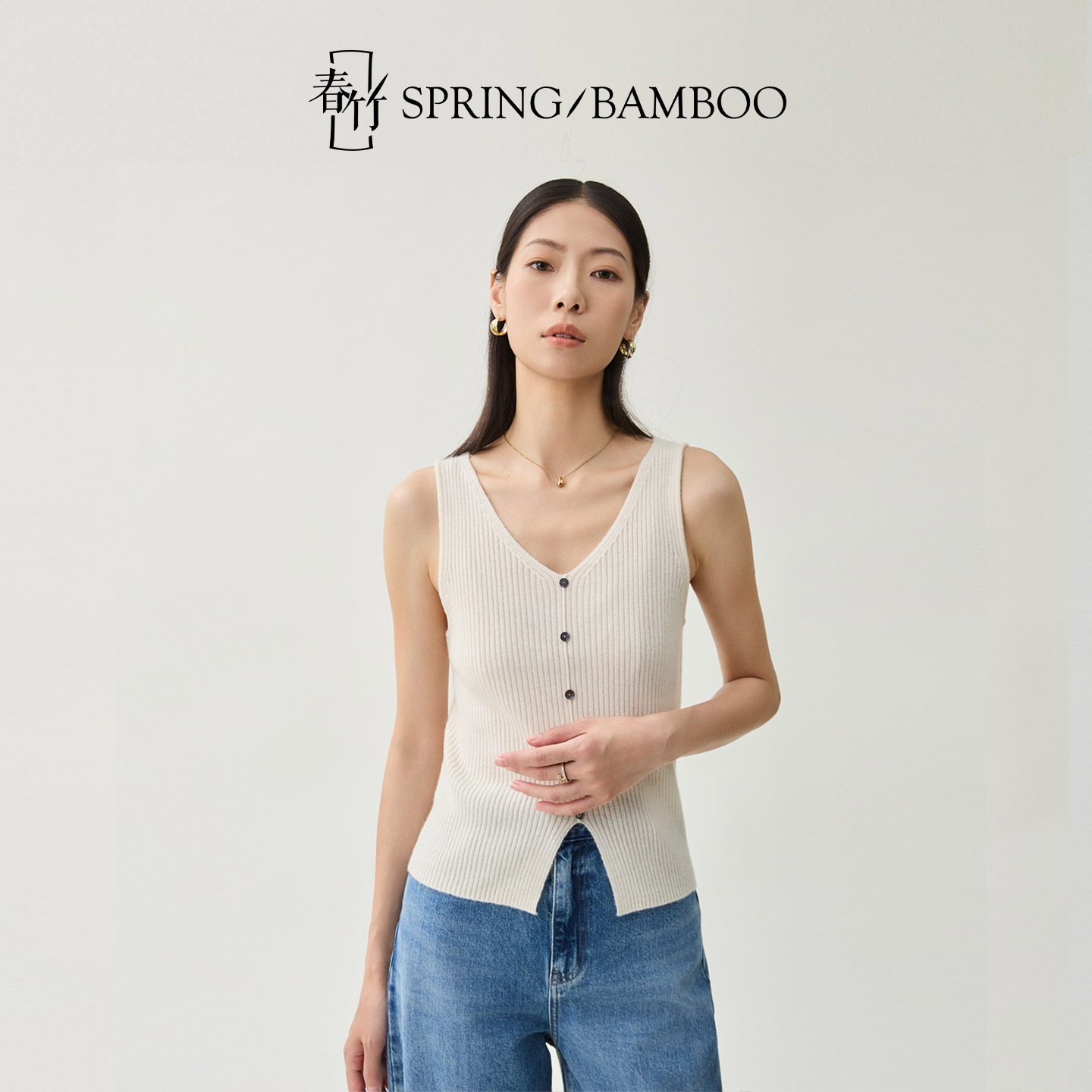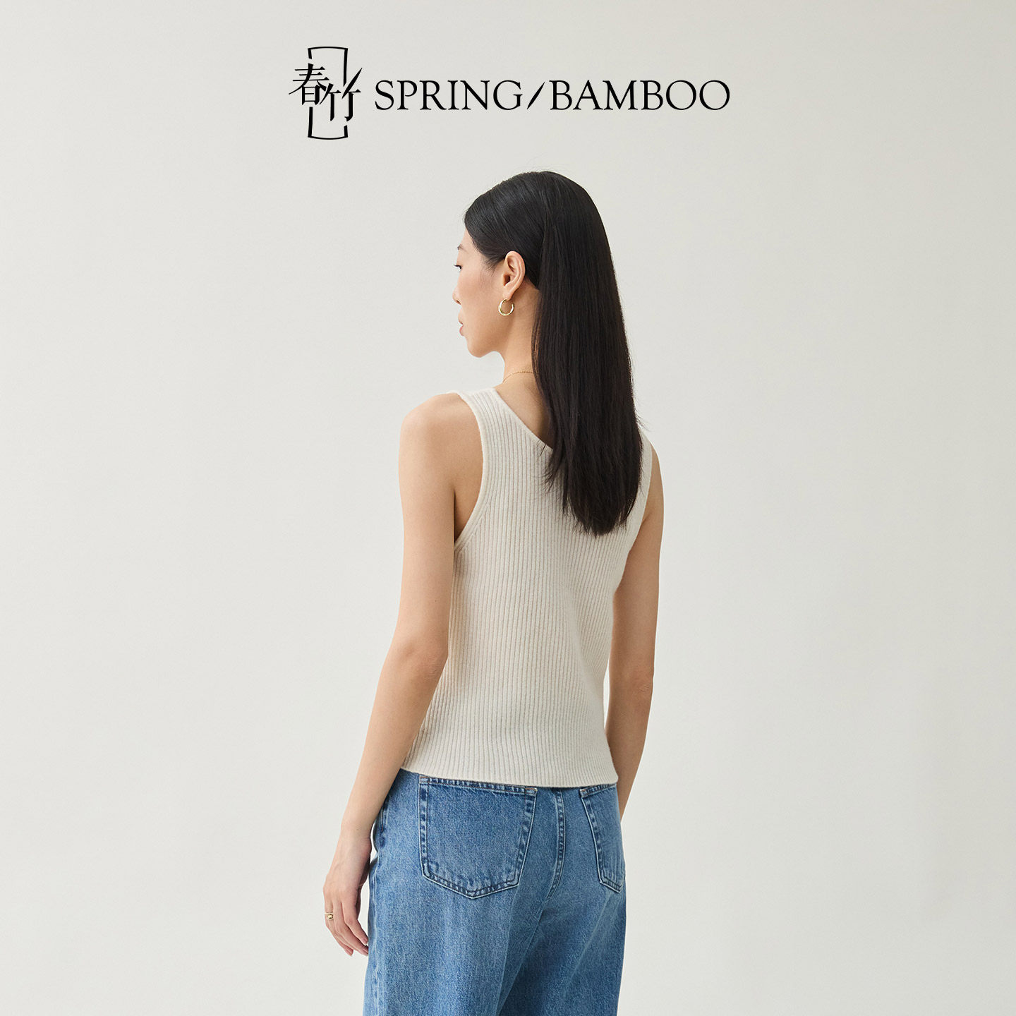 新款 春竹2025秋季 100%山羊绒V领基础背心羊绒衫 轻柔引力