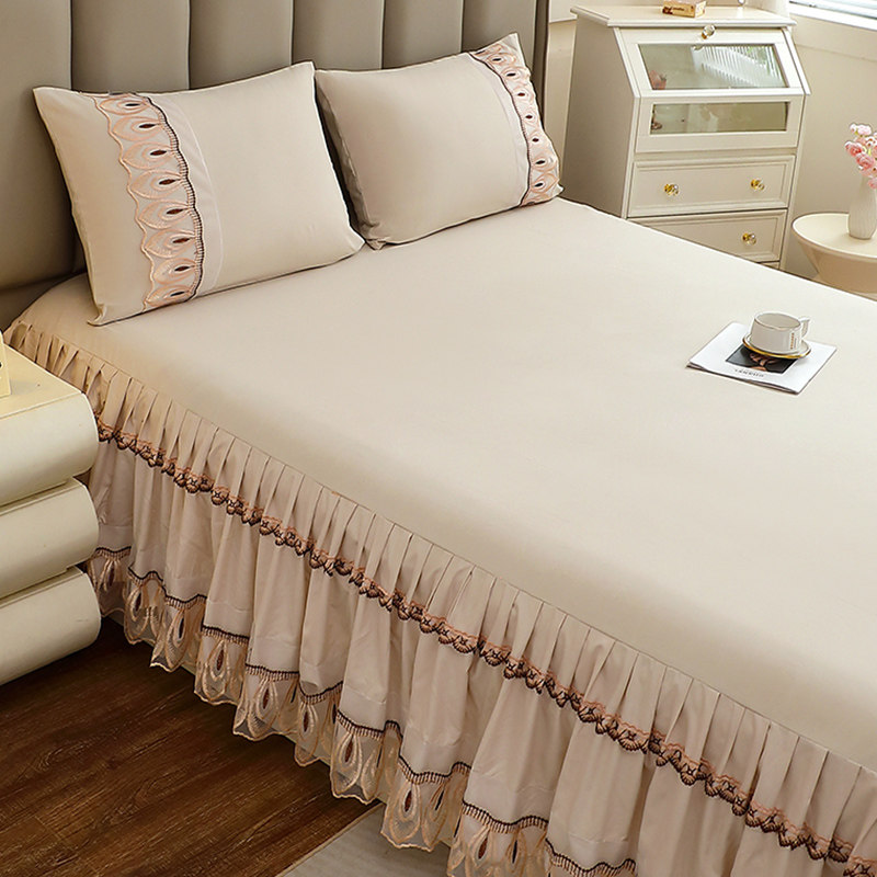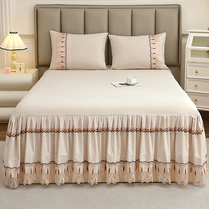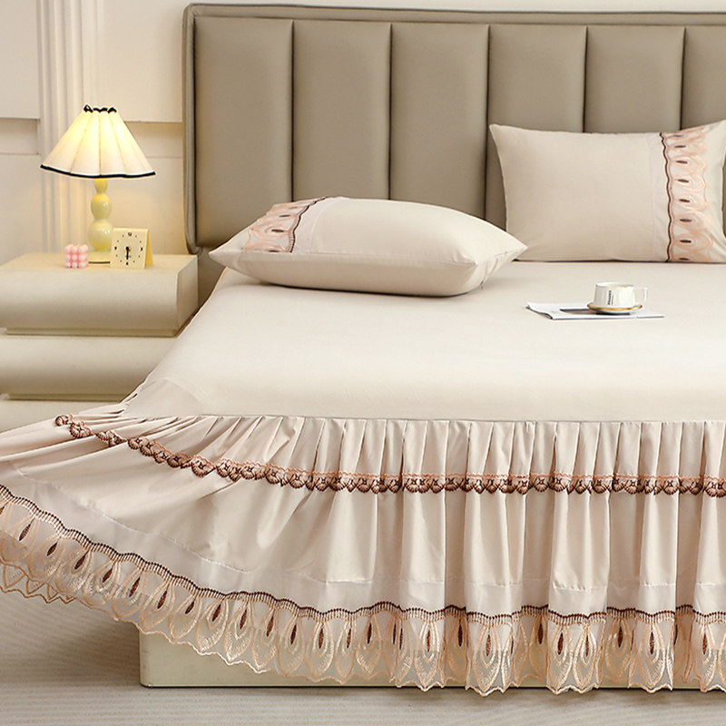 公主风蕾丝花边床裙单件床套180x220cm床单带裙边三件套遮丑下摆