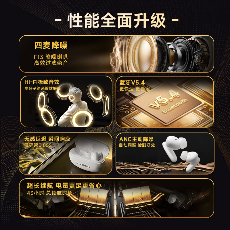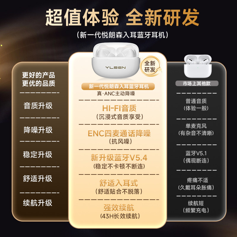 悦朗森入耳式 蓝牙耳机真无线高音质苹果安卓适用蓝牙5.4超长续航