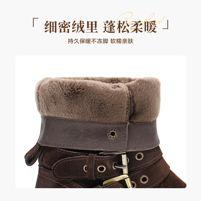 靴真皮运动靴加绒马丁靴女款 女靴时装 YAB160 新款 fed粗跟短靴冬季