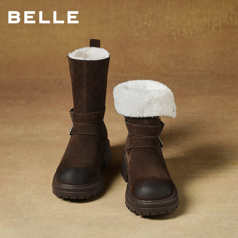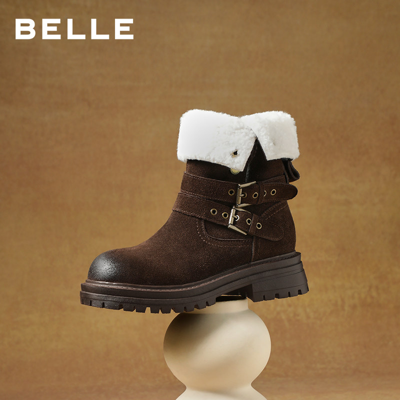 超软羊皮柔软百搭时尚 森达时装 商场同款 冬款 厚底短靴4T6B2 靴女鞋