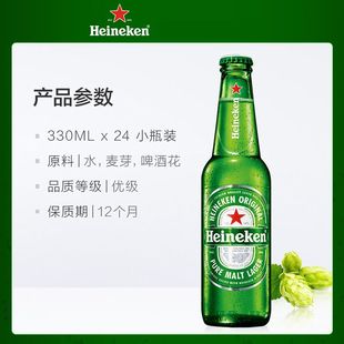 beer一箱价11.4度 24瓶heineken 喜力小瓶啤酒 荷喜力啤酒330ml