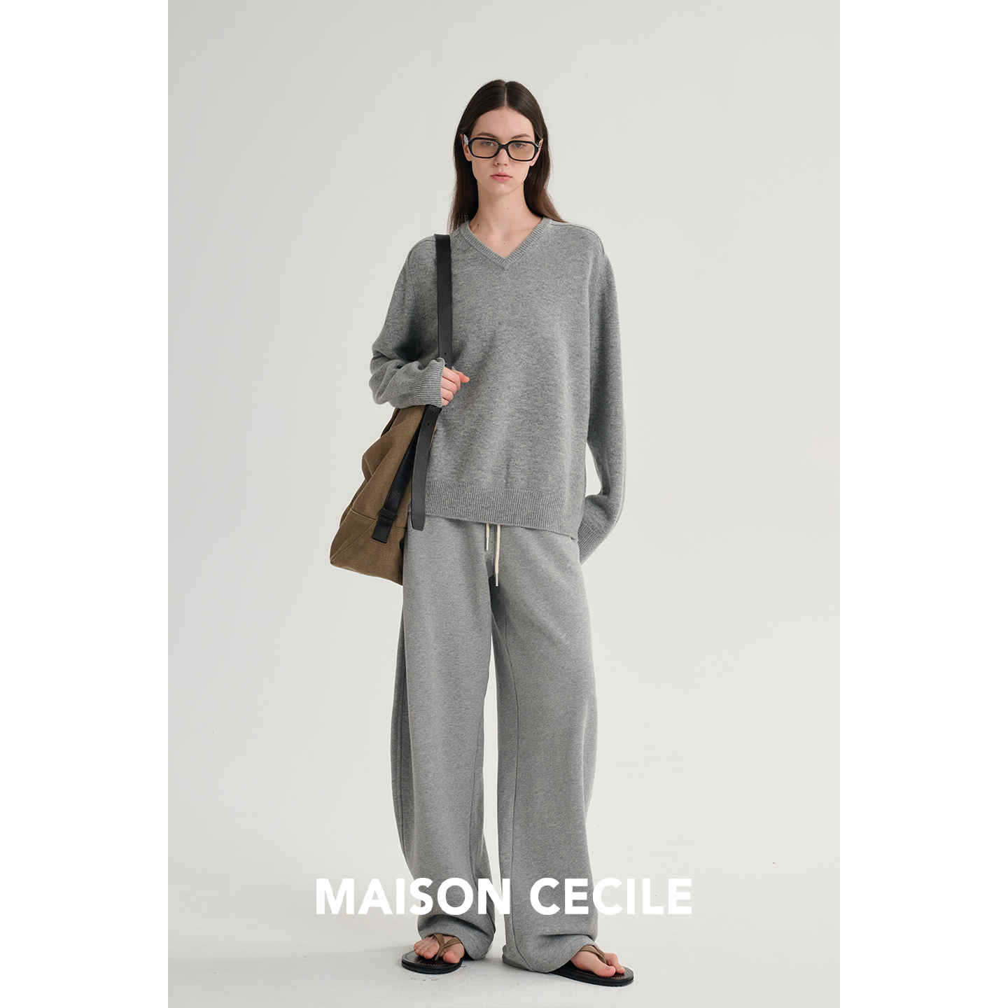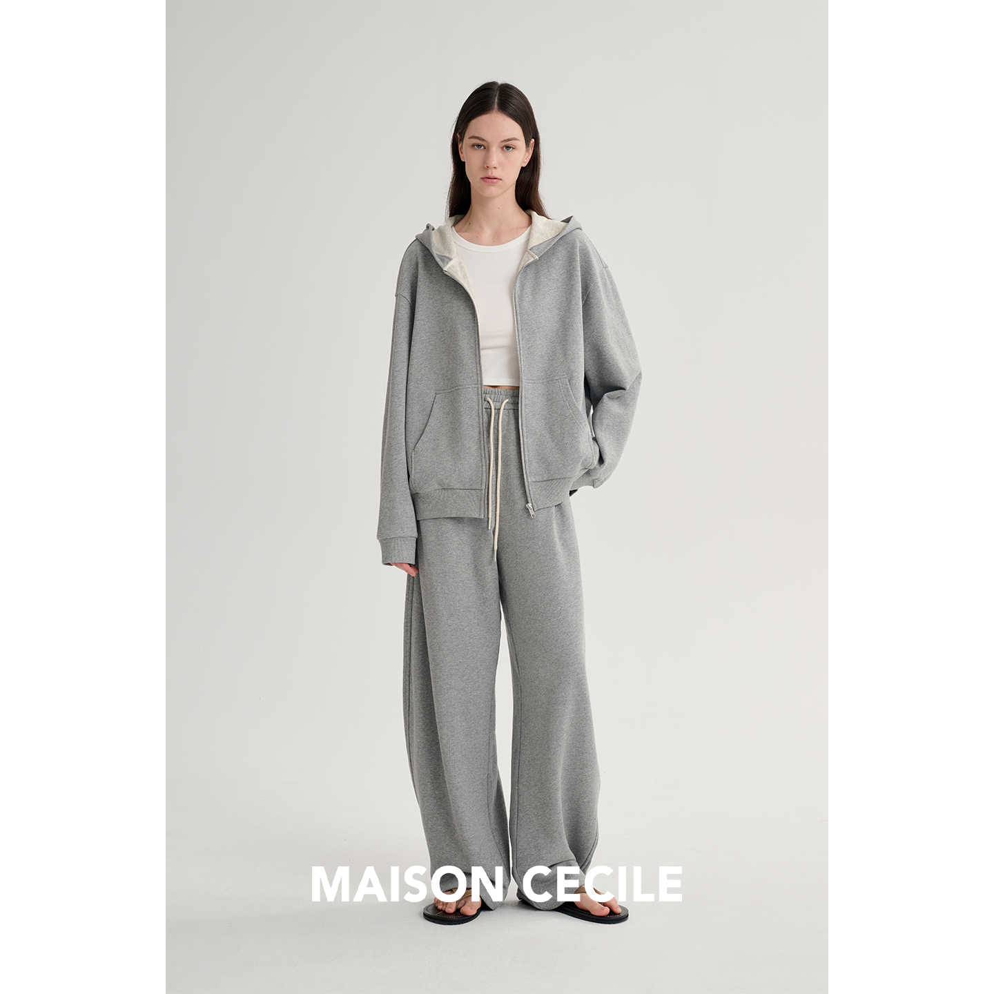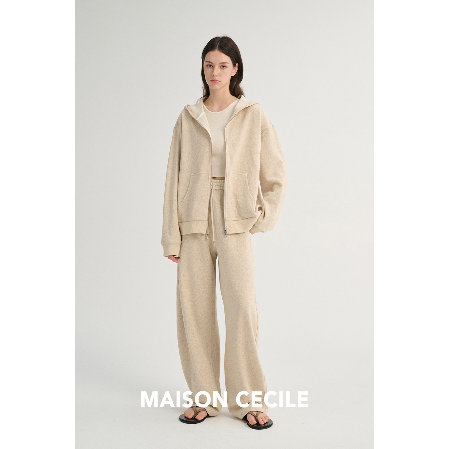 松紧腰抽绳长裤 春秋亚麻宽松休闲连帽卫衣外套 CECILE MAISON