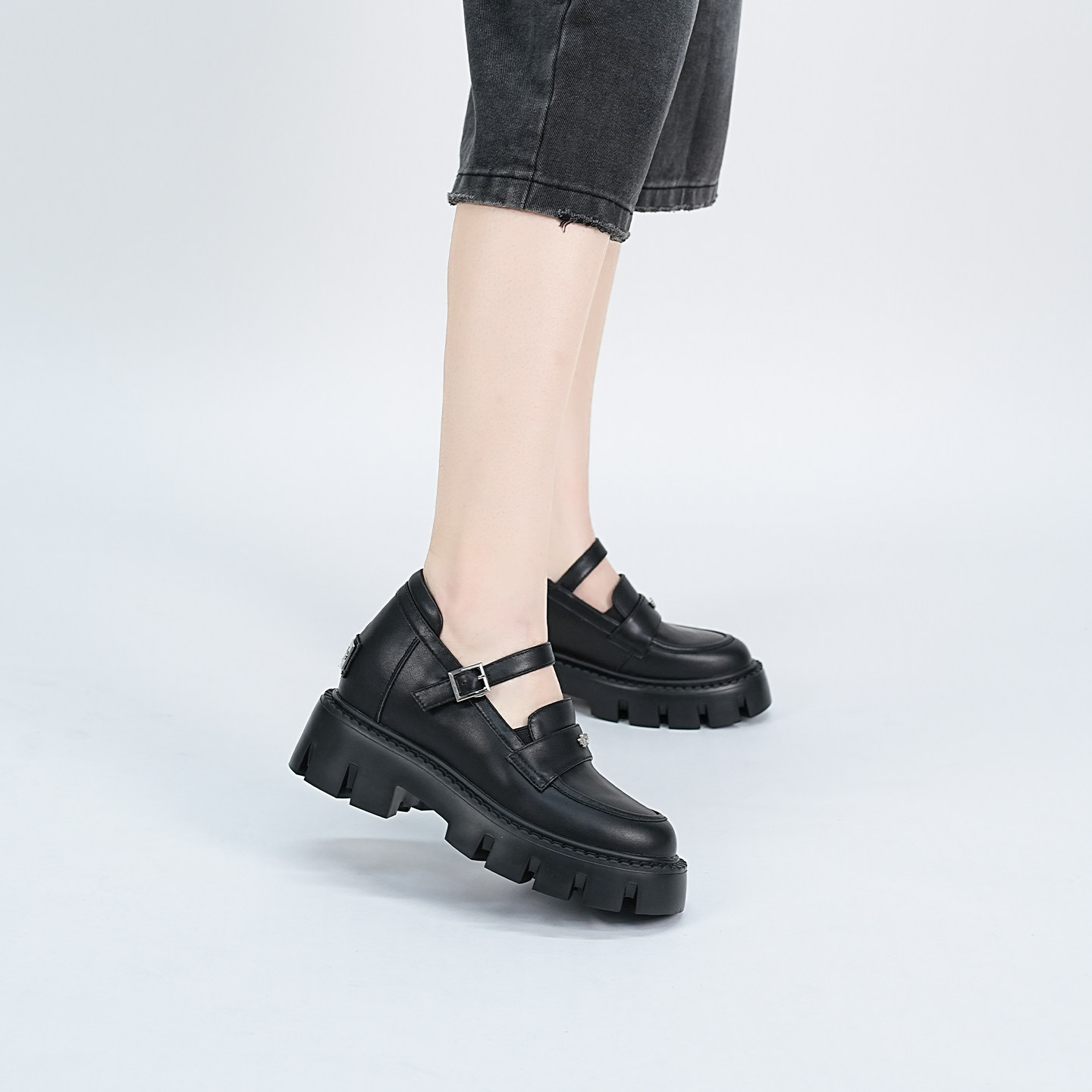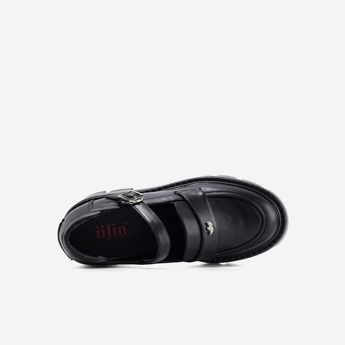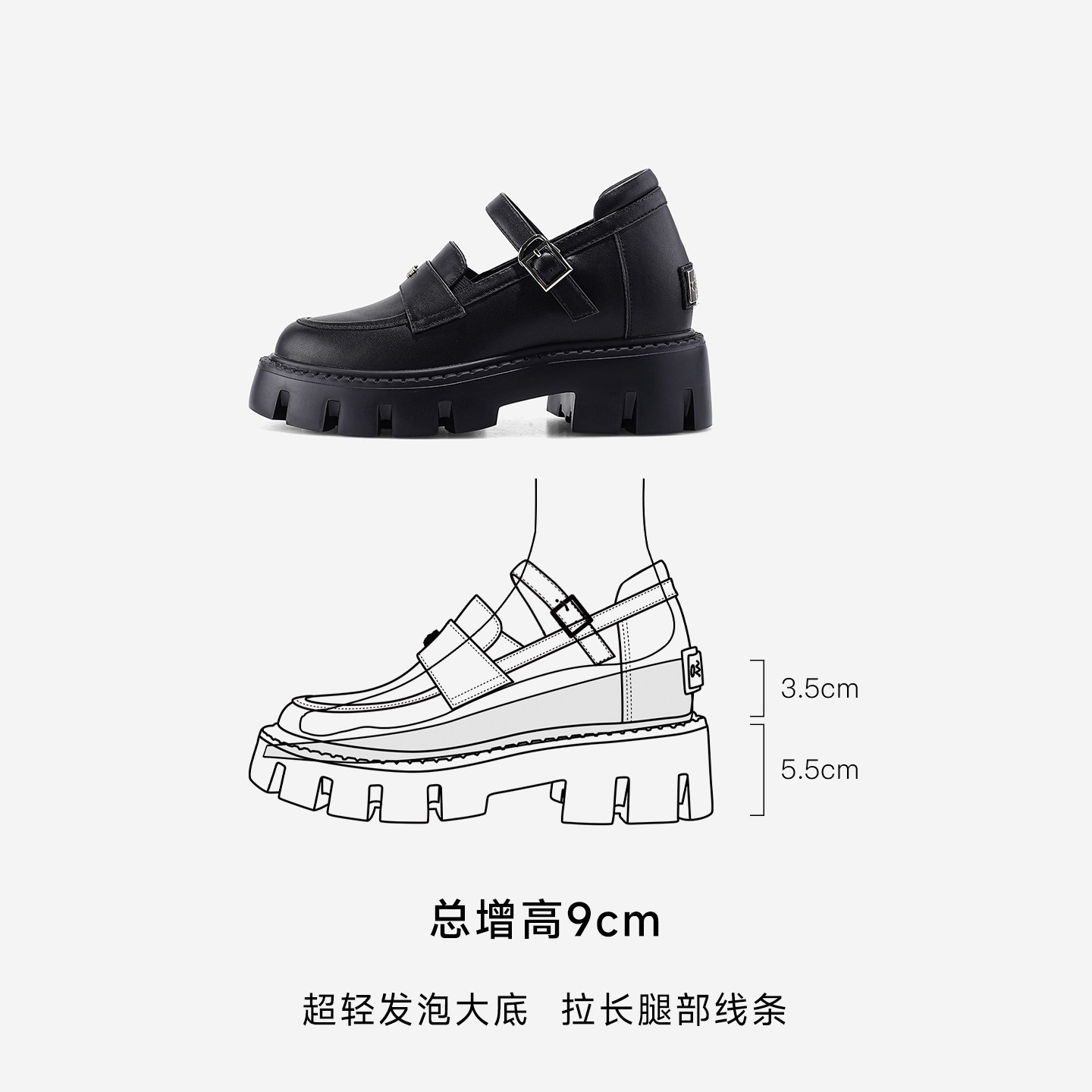 iiJin艾今经典 女724FNF 9cm超轻厚底内增高搭扣休闲乐福玛丽珍皮鞋