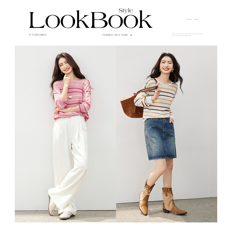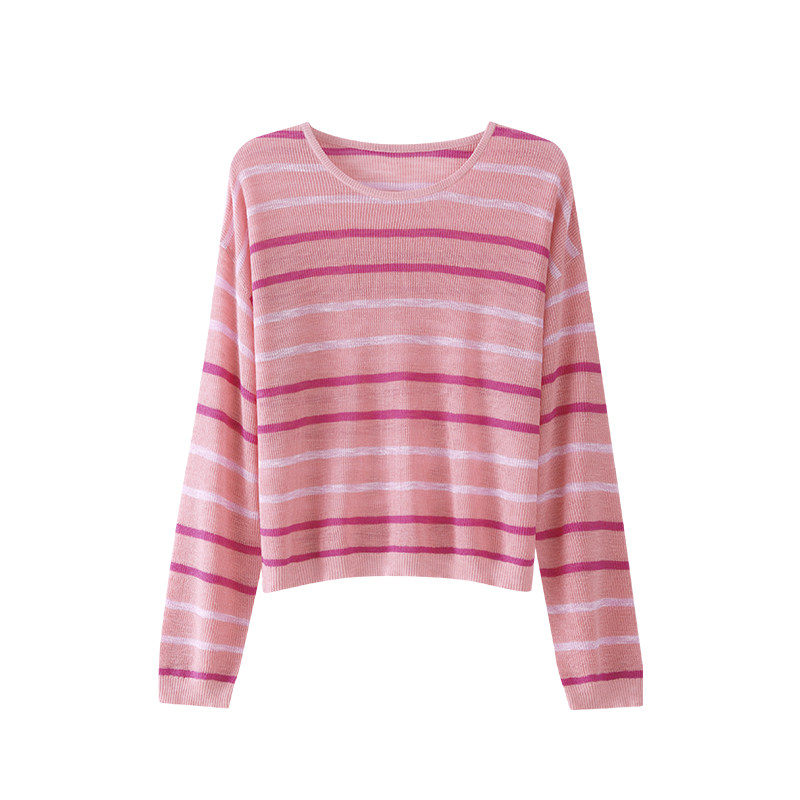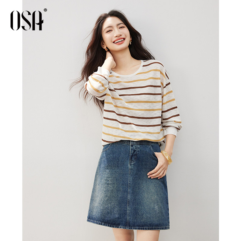 轻薄宽松显瘦套头罩衫 OSA欧莎条纹长袖 新款 女2026春季 上衣 针织衫