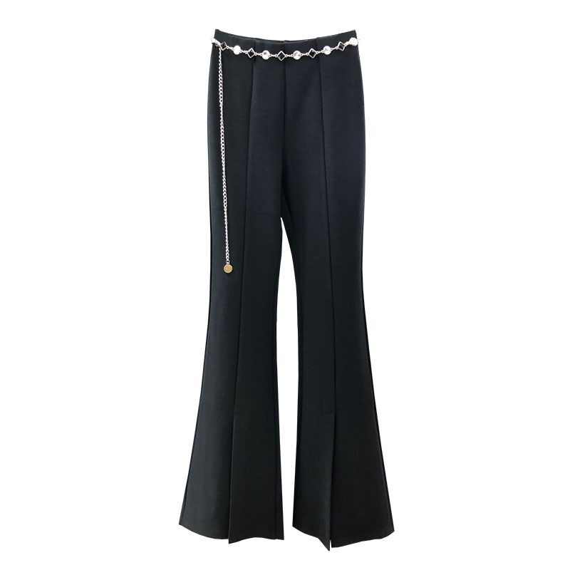 长裤 女垂感钻链腰带紧身前开叉喇叭裤 裤 秋冬高腰弹力中线微喇西装