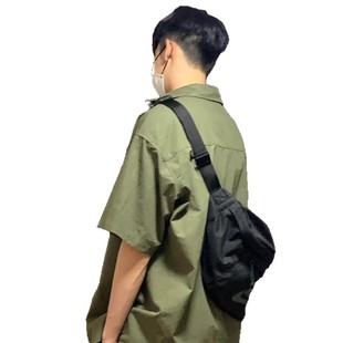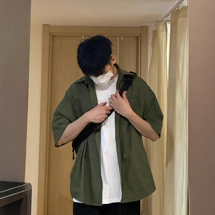 新品 ins风百搭简风宽松纯色半袖 墨绿色衬衫 t恤男韩版 短袖 夏季