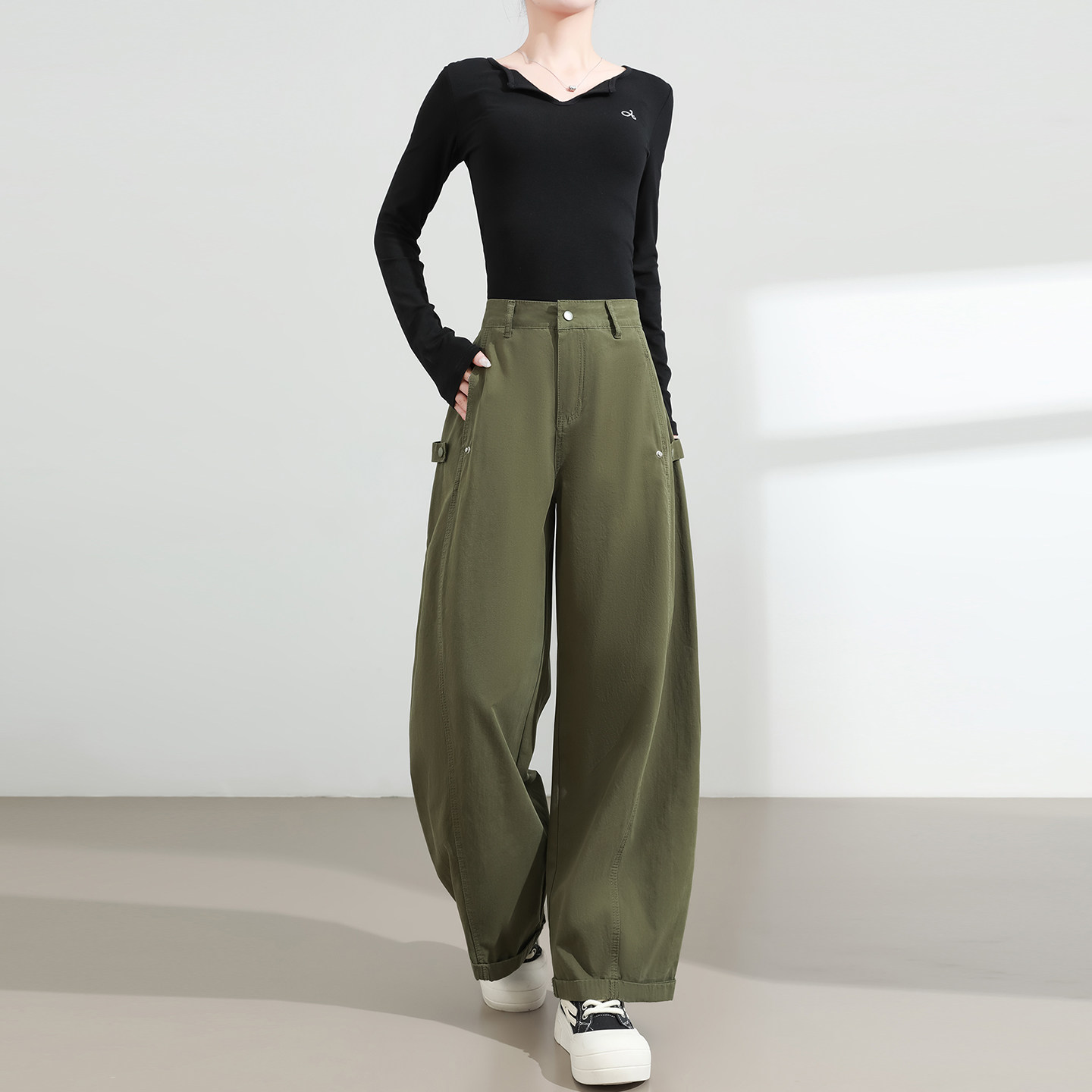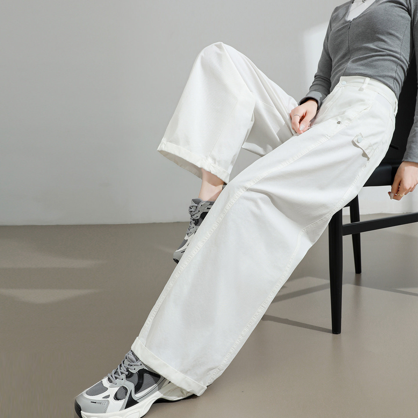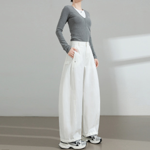 直筒镰刀裤 高腰宽松休闲垂感百搭白色工装 子 女春秋新款 弯刀阔腿裤